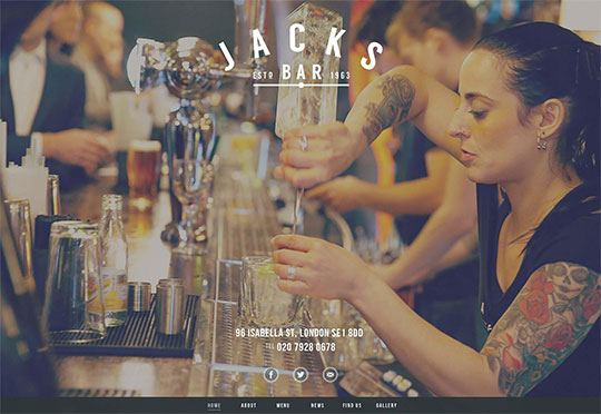 下面这个高大上的单页网站属于伦敦的Jacks Bar,这是一家酒吧餐厅二合一的餐饮机构,在移动端浏览成为用户首选的今天,滚动比点击更加有用。