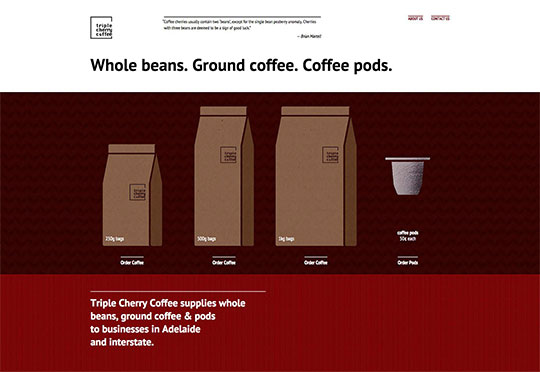 而这家名为三重樱咖啡的站点则是另一个实例,典型的单页设计,没有杂乱的信息,它只有两个导航链接,并且两者都在页面的相同区域。