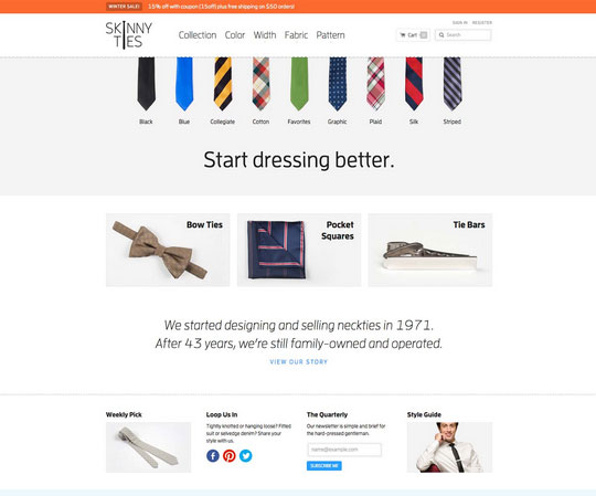 Skinny Ties 就是一个响应灵敏的响应式网页,在任何屏幕上都能良好地显示,从图片到内容,这个网站都经得起最挑剔的客户的考验。