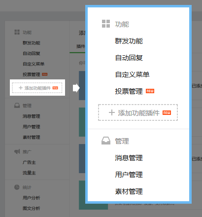 (添加插件功能在左侧导航“功能”模块中)